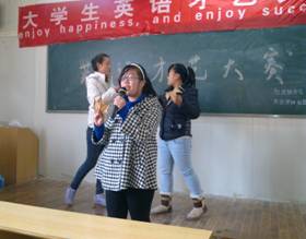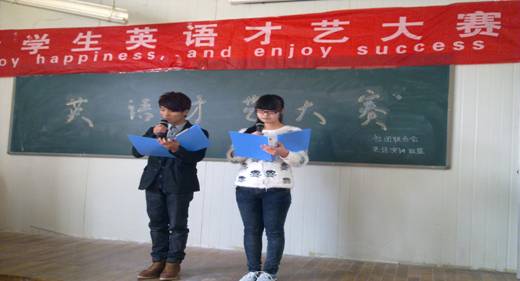 为了给学生提供英语技能展示平台,展现学生英语风采,创设积极活跃的校园英语文化氛围,提升学生英语综合应用能力。2013年12月17日下午,由外语系主办、大学英语第一教研室承办、社团联合会英语演讲联盟协办的“2013yL23411永利官网登录大学生英语才艺大赛”决赛在6405教室这里隆重举行。大学英语教学部主任李继平应邀出席,教研室主任刘燕、贠旭,以及邓雪玲、朱蕾老师担任评委。
