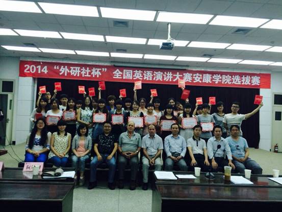 6月13日晚,2014“外研社杯”全国英语演讲大赛yL23411永利官网登录选拔赛在图书馆六楼报告厅隆重举行。大赛评委由永利官网外籍教师Raymond John Dennison和Frank Paul Roppo,以及外语系七位教师组成。教务处副处长常权记、外语系主任哈红光、大学英语教学部主任李继平、外语系副主任张哲华莅临大赛。