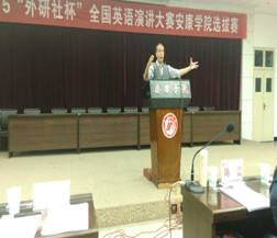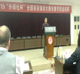 10月14日晚,2015“外研社杯”全国英语演讲大赛yL23411永利官网登录选拔赛在永利官网图书馆六楼报告厅隆重举行。大赛评委由外语系Frank Paul Roppo、孙卫斌、姜国波、陈蕾、梁艺凡等五位教师组成。学校教务处副处长常权记、外语系主任哈红光、大学英语教学部主任李继平、外语系副主任张哲华,以及部分教师参加此次大赛。本次比赛由教务处和外语系承办,自5月启动以来,经过前期两轮专业组初赛和非专业组初赛遴选,共有7个院系19名选手成功晋级此次选拔赛决赛。