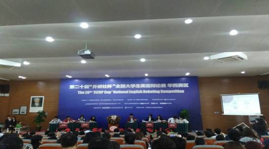 “外研社杯”全国大学生英语辩论赛是目前国内规模最大、水平最高的英语辩论赛事,代表了我国英语口语教学的最高水平,由共青团中央,全国学联及北京外国语大学联合主办,外语教育与研究出版社承办。2017年全国华西赛区英语辩论赛共有来自陕西、四川、重庆、山西、河南、甘肃等11个省、自治区和直辖市的106所高校代表队参与,其中包括西安交通大学、四川大学、电子科技大学、重庆大学、四川外国语大学、西安外国语大学等多所全国重点大学及英语专业院校。大赛采用英国议会制辩论体系这一目前全球英语辩论公认的最高竞技形式,与“世界大学生英语辩论赛”赛制接轨。辩题凸显议会制本色,紧密贴合当代大学生所关注的时事和政策新闻,涉及政治、经济、文化、法律、道德哲学等各个领域,旨在培养学生的英语表达能力和思辨能力。