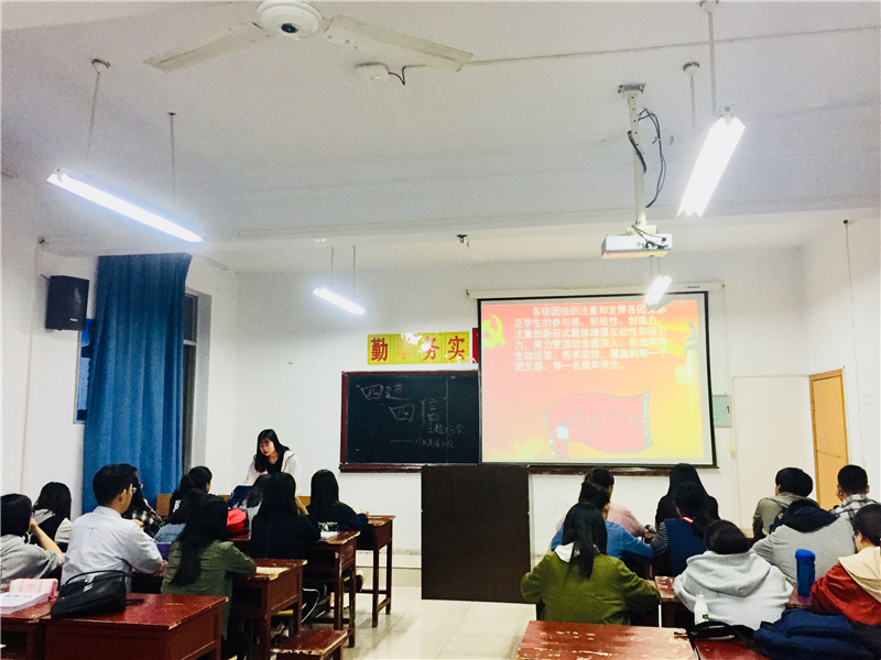 为积极响应校团委关于开展“四进四信”活动的号召、深入学习习近平总书记系列讲话精神,引导广大青年学生树立远大的理想和抱负,yL23411永利官网登录团总支按照校团委将继续深入开展高校共青团学习宣传贯彻习近平新时代中国特色社会主义思想“四进四信”活动的相关要求,于2018年3月—4月组织开展了“四进四信、学习习近平总书记讲话”团日活动。