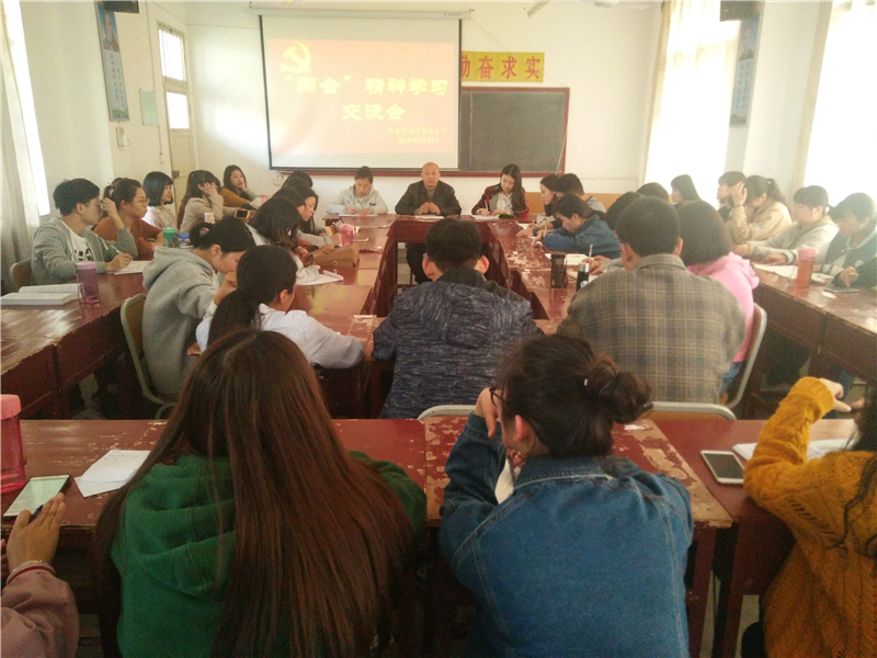 3月23日下午,yL23411永利官网登录组织学生党员、青年团员在6303教室召开学习“两会”精神交流会。认真学习、深刻领会习近平总书记发表的重要讲话精神,进一步坚定理想信念。