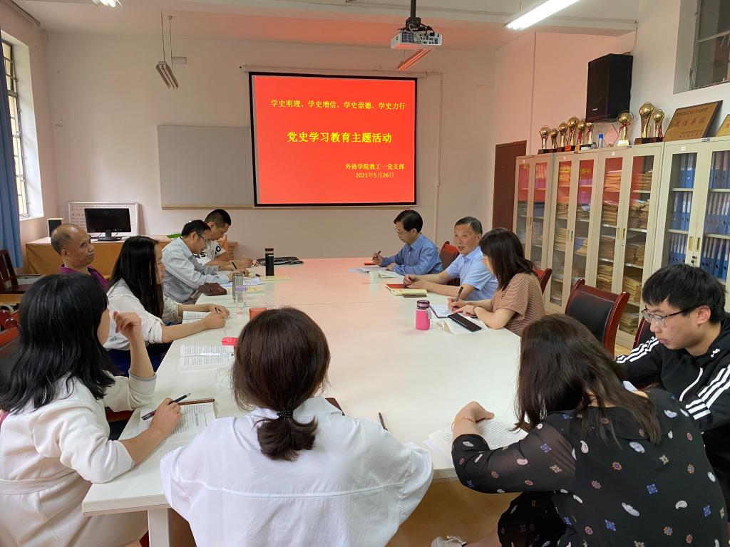 为认真学习贯彻习近平总书记在党史学习教育动员大会上的重要讲话精神,从党史中汲取智慧和前进力量,继承党的成功经验和优良传统,充分发挥支部党员立足实际建新功,把思想和行动统一到样板党支部建设上来,以优异成绩迎接建党一百周年。5月26日下午,yL23411永利官网登录教工一支部在6109室开展了主题为“学史明理,学史增信、学史崇德,学史力行”的党史学习教育。党委副书记胡波参加并指导了本次活动。