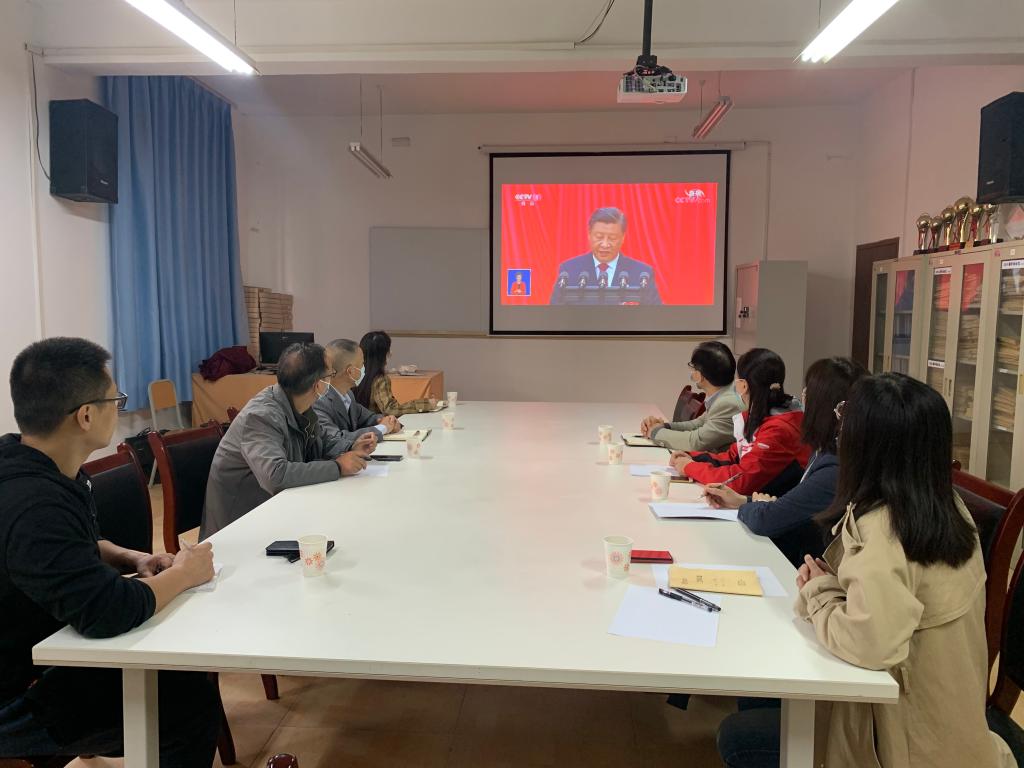 10月16日上午,中国共产党第二十次全国代表大会在北京隆重开幕。习近平总书记代表第十九届中央委员会向大会作了报告。为深入学习宣传贯彻大会精神,上午10时,yL23411永利官网登录组织无课师生收听收看了中国共产党第二十次全国代表大会开幕会。中心组成员在江南校区6109会议室集中观看党的二十大开幕会直播盛况;无课教职工和学生通过线上观看二十大盛会,全院共计700余人观看了党的二十大开幕盛会。通过认真聆听学习党的二十大报告,感受新时代党和国家事业取得的历史性成就、发生的历史性变革。