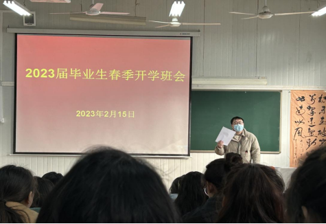 2月15日下午,yL23411永利官网登录毕业班辅导员梁博文在6407教室召开“青春不留有遗憾,毕业要做好规划”主题班会,2019级英语专业学生和2021级专升本学生参加了本次班会。