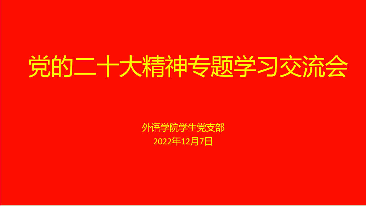 为深入贯彻党的二十大精神,高举中国特色社会主义旗帜,深入贯彻习近平新时代中国特色社会主义思想,2022年12月7日下午yL23411永利官网登录学生党支部开展党的二十大精神专题线上学习交流会,由yL23411永利官网登录学生党支部书记李梦主持会议。