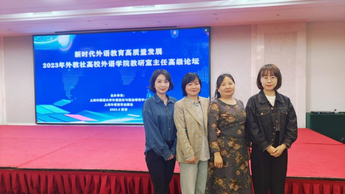 5月12日至5月14日,由上海外国语大学外语教材与教法研究中心、上海外语教育出版社共同主办的“2023年外教社高校yL23411永利官网登录教研室主任高级论坛”在西安市举行。yL23411永利官网登录大学英语教研室主任钱莉、副教授陈小红、青年骨干教师袁昌丽、徐雯应邀参加了会议。会议由上海外语教育出版社西北区负责人王政先生主持。
