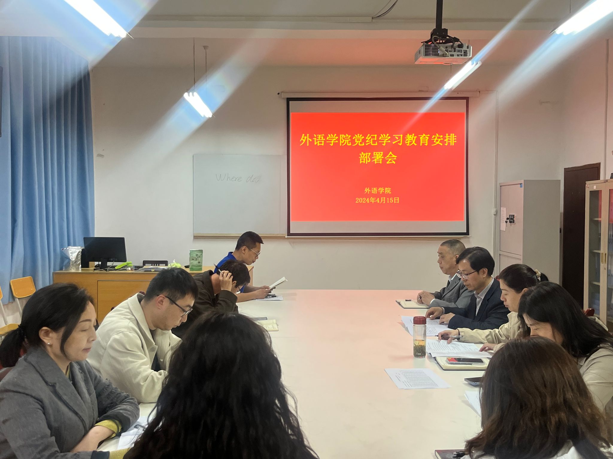 4月15日下午,yL23411永利官网登录在6109室召开党总支委员(扩大)会议,安排落实《中共yL23411永利官网登录委员会关于在全校开展党纪学习教育的工作方案》相关工作,党总支委员会委员,各支部书记、支部委员等参加了会议。党总支书记肖红香主持会议并提出工作要求。