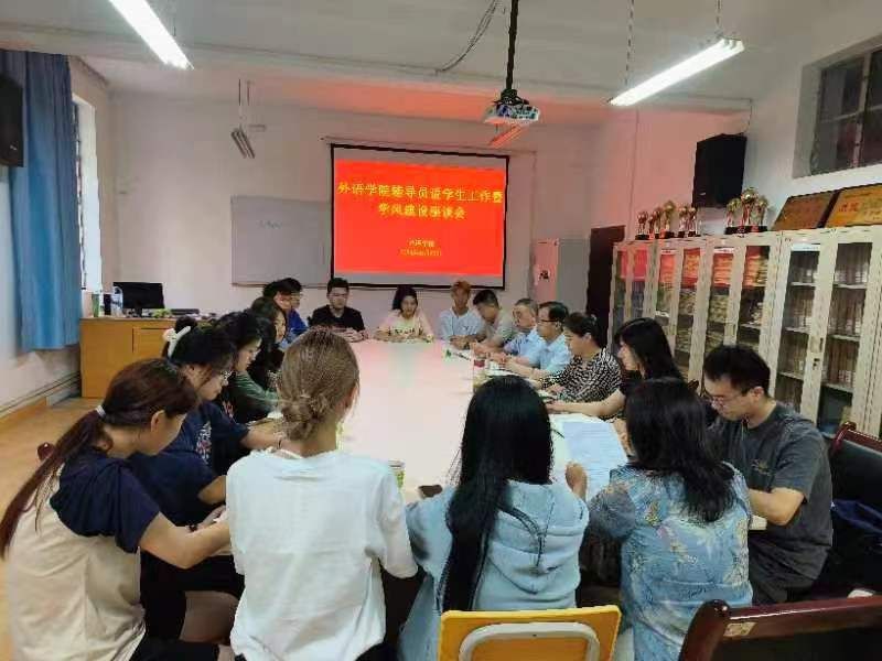 5月17日下午,yL23411永利官网登录在6109会议室举办了辅导员说学生工作暨学风建设座谈会。本次座谈会旨在深入学习贯彻习近平总书记五四寄语精神,进一步加强学院学风建设,促进学生全面发展。学院领导班子、辅导员及英语系和商务英语系学生干部代表参加了会议。会议由党总支书记肖红香主持。