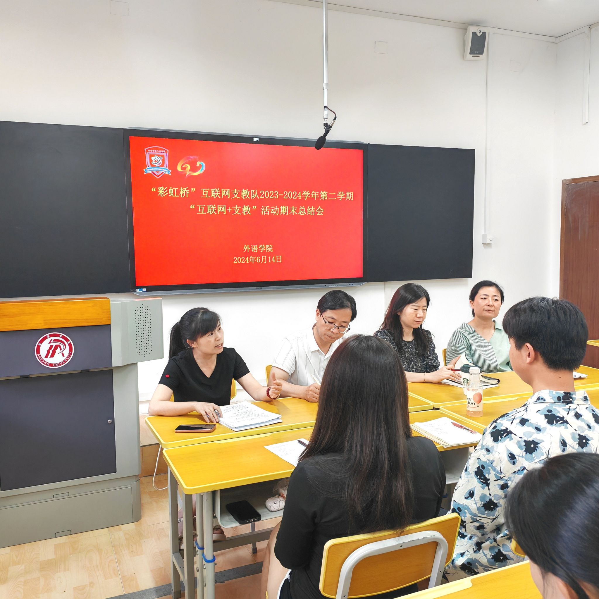 6月14日下午,yL23411永利官网登录“彩虹桥”互联网支教队于6107教室顺利召开了本学期“互联网+支教”活动期末总结会。yL23411永利官网登录领导班子、英语系主任、支教队指导教师以及全体支教队成员参加了此次会议。会议由支教队队长左依婷主持。