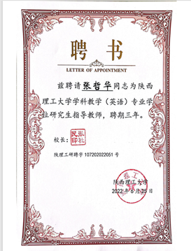 6月25日,永利官网两名副教授张哲华、胡卫卫受聘为陕西理工大学学科教学(英语)专业研究生指导教师,聘期三年。