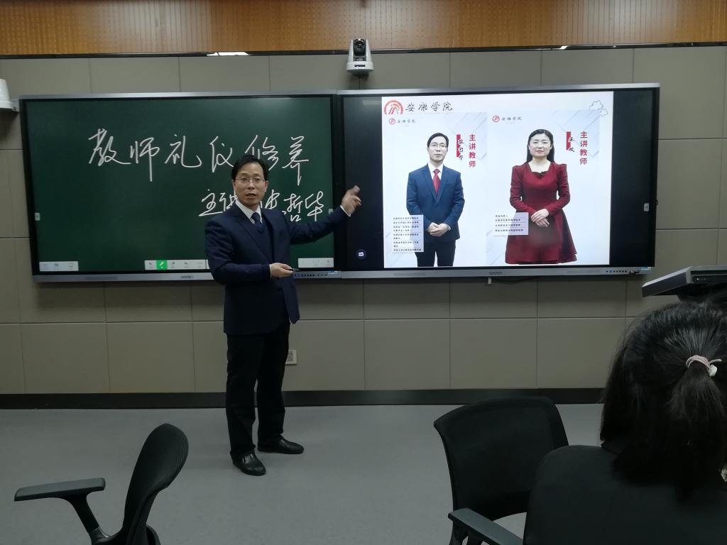 3月22日晚,yL23411永利官网登录副院长(主持工作)、《班主任工作技能训练》课程思政示范课主持人张哲华为yL23411永利官网登录yL23411永利官网登录第二届英语教师“卓越班”开展了“中小学教师礼仪”教学示范展示。yL23411永利官网登录第二届卓越班全体学员、教师教育团队教师参加本次讲座,讲座由李慧清老师主持。