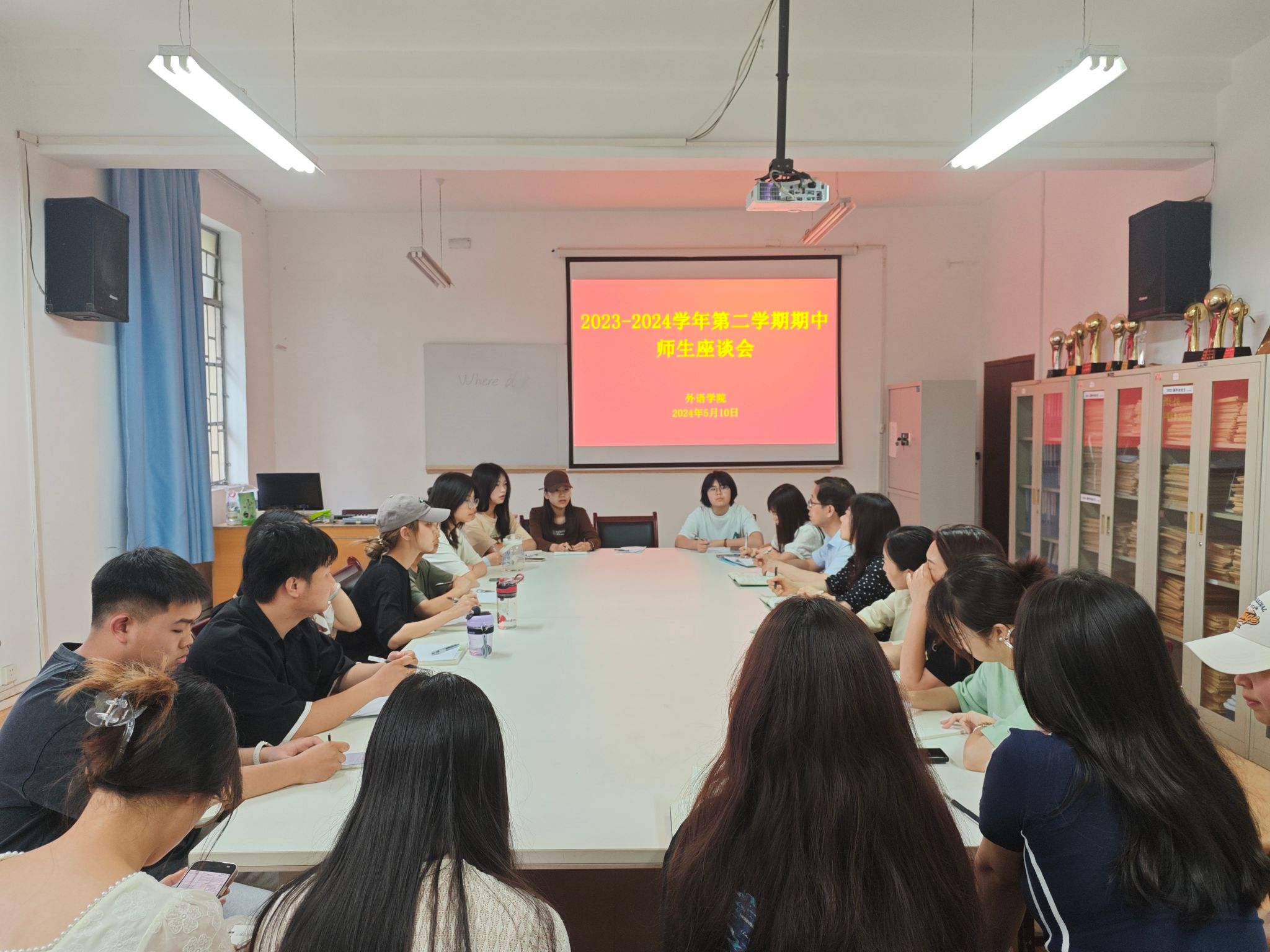 为倾听学生心声,持续改进教学、管理、服务水平,提升人才培养质量,5月10日下午,yL23411永利官网登录在6109召开了2023-2024学年第二学期期中师生座谈会。学院领导班子、督导、系主任、辅导员及英语系和商务英语系各班学生代表参加了会议。会议由英语系主任周玫主持。