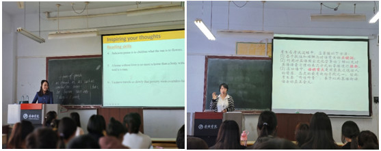 为进一步提升大学英语课堂教学质量,鼓励大学英语教师积极探索并不断创新教学方法,近日大学英语教研室开展了大学英语课堂教学观摩研讨活动,大学英语骨干教师朱蕾和桂红梅分别呈现了大学英语读写课和听说课。yL23411永利官网登录副院长刘子富、教学督导李继平、刘燕、大学英语教研室无课老师参加了此次观摩研讨活动。