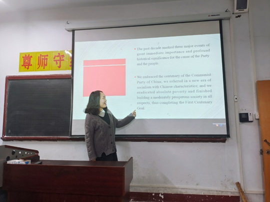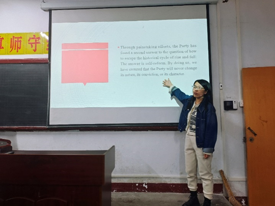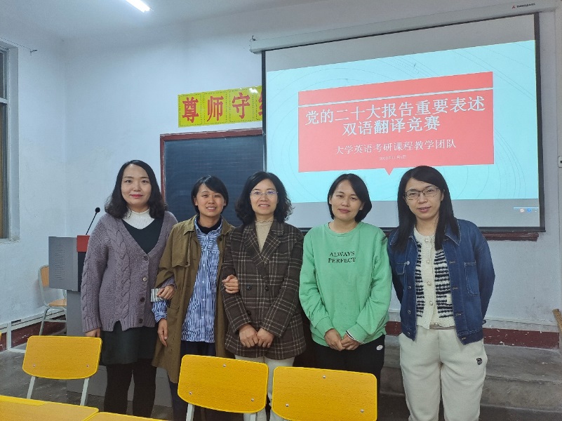 随着党的二十大的胜利闭幕,yL23411永利官网登录党总支将学习贯彻党的二十大精神作为首要政治任务、作为外语事业发展的思想主线,并通过课程思政建设,深入贯彻落实党的二十大精神。2022年11月2日下午,yL23411永利官网登录大学英语考研课程教学团队在6108教室成功举办了党的二十大报告重要表述双语翻译竞赛,通过学习交流二十大报告中重要表述的英语翻译,以比赛的方式鼓励各位教师积极参与到党的二十大报告学习和贯彻落实,深入推进大学英语课程思政建设,强化大学英语课程的思政引领作用。yL23411永利官网登录副院长刘子富、大学英语教研室主任钱莉及考研课程教学团队全体教师参加了此次活动。