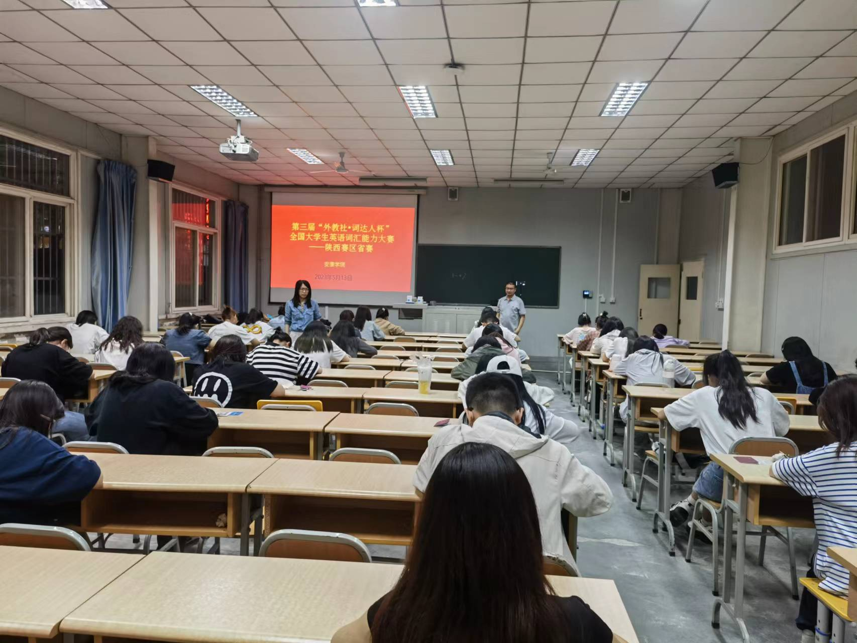 由yL23411永利官网登录承办的第三届“外教社·词达人杯”全国高校大学生英语词汇能力大赛陕西省赛于2023年5月13日晚在江南校区1012教室顺利举行。来自全校各个专业、不同年级的50名晋级省赛的学生运用手机终端、依托英语词汇智慧学习平台,以在线方式参加了此次大赛,为了竞赛客观、公平、公正,比赛全程直播。此次参加陕西省赛的50名同学,经由前一阶段的校赛选拔产生,全校各年级、各专业的598名学生参加了校赛阶段的选拔。