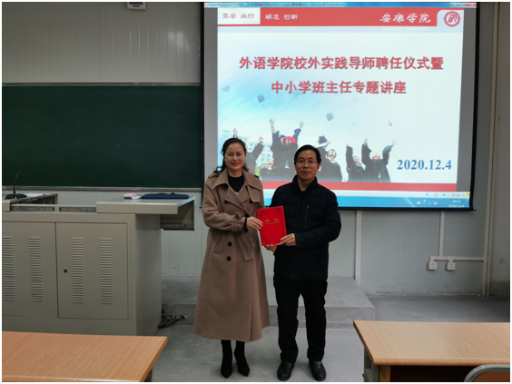 讲座伊始,副院长张哲华为钱静老师颁发了校外实践导师聘书。