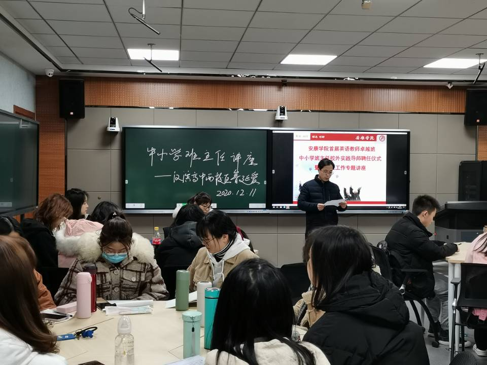 为扎实推进《yL23411永利官网登录首届英语教师卓越班实施方案》,提高师范生的教师职业能力,努力践行中小学教师职业道德,强化教师职业信念和职业认同感,12月11日下午,yL23411永利官网登录特邀安康市汉滨高中西校区优秀班主任鲁延爱老师,为永利官网首届英语教师卓越班学生举办了中小学班主任专题讲座。