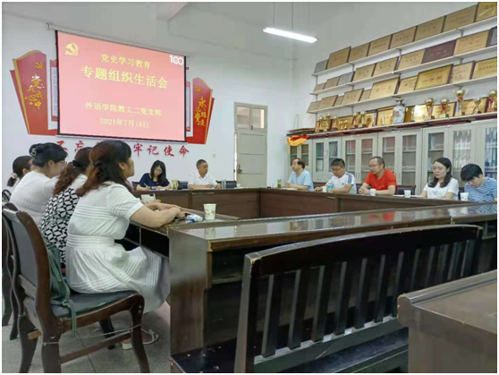 7月14日上午,yL23411永利官网登录教工二党支部在体育馆一楼会议室组织召开了党史学习教育专题组织生活会,会议由党支部书记刘子富主持。