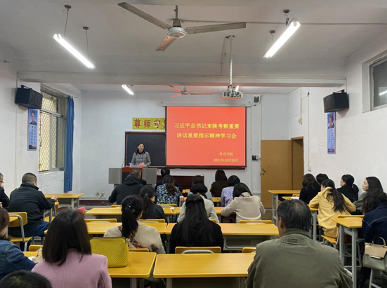 会上,肖红香传达了学校《关于深入学习宣传贯彻习近平总书记来陕考察重要讲话重要指示精神的通知》精神及有关要求,并对院党总支学习宣传贯彻习近平总书记来陕考察重要讲话重要指示精神做了强调安排,并对学院领导班子,各党支部开展学习研讨,全体党员学习自觉等方面提出具体要求:一是院领导班子成员深入联系的党支部开展宣讲,结合《习近平总书记来陕考察重要讲话重要指示精神宣讲提纲》,深入开展宣讲,切实把总书记重要讲话重要指示传达到每一个党组织、每一名共产党员。二是要深入开展学习研讨。要围绕学习习近平总书记来陕考察重要讲话重要指示精神,就如何全面贯彻党的教育方针,落实立德树人根本任务,厚植爱党、爱国、爱人民、爱社会主义的情感,努力培养德智体美劳全面发展的社会主义建设者和接班人,办好人民满意的教育展开研讨。三是全体党员要对照学习要求,全面准确、深刻领会习近平总书记重要讲话重要指示精神,切实增强学习贯彻总书记重要讲话重要指示的政治自觉、思想自觉、行动自觉,以良好的精神面貌和高度的政治自觉积极投身学校发展建设,以实际行动回报总书记和党中央的关怀厚爱。