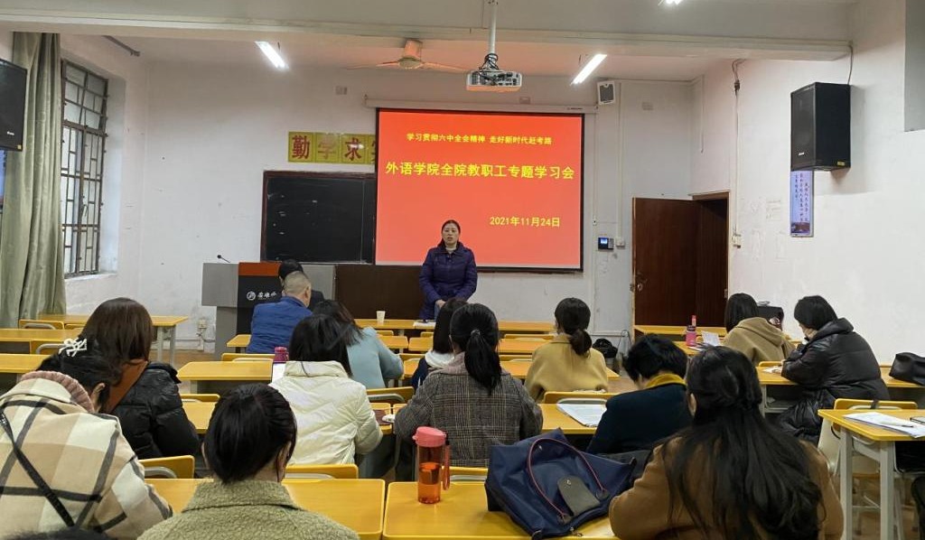 11月24日下午,yL23411永利官网登录在6107召开党的十九届六中全会精神专题学习会,学院领导班子、全体党员、全院教职工参加了专题学习会。会议由yL23411永利官网登录党总支书记肖红香主持。