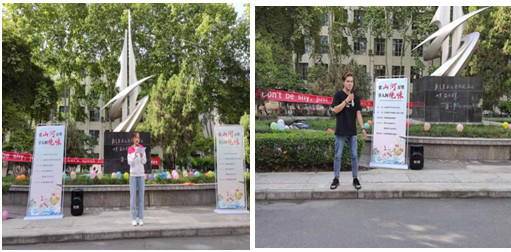 活动以网络热歌《舌尖上的中国》开场,在增添青春活力的同时,也吸引了不少想参与活动同学的目光。以美食,美景为主的英语角在两位主持人热情的声音下拉开序幕。
