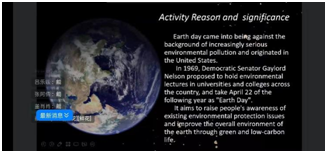 在Free talk环节,主持人荣幸地邀请到了James和Yahness两位留学生向同学们介绍了自己来到中国后的有趣生活,两位留学生用幽默风趣的语言介绍了自己在中国的留学经历,之后就“世界地球日”(World Earth Day)这个主题展示了精彩的talk show。也将活动氛围推向高潮。同时,同学们也六号楼教室、小花园和操场积极展开了自己对于地球保护的看法和理解的讨论。