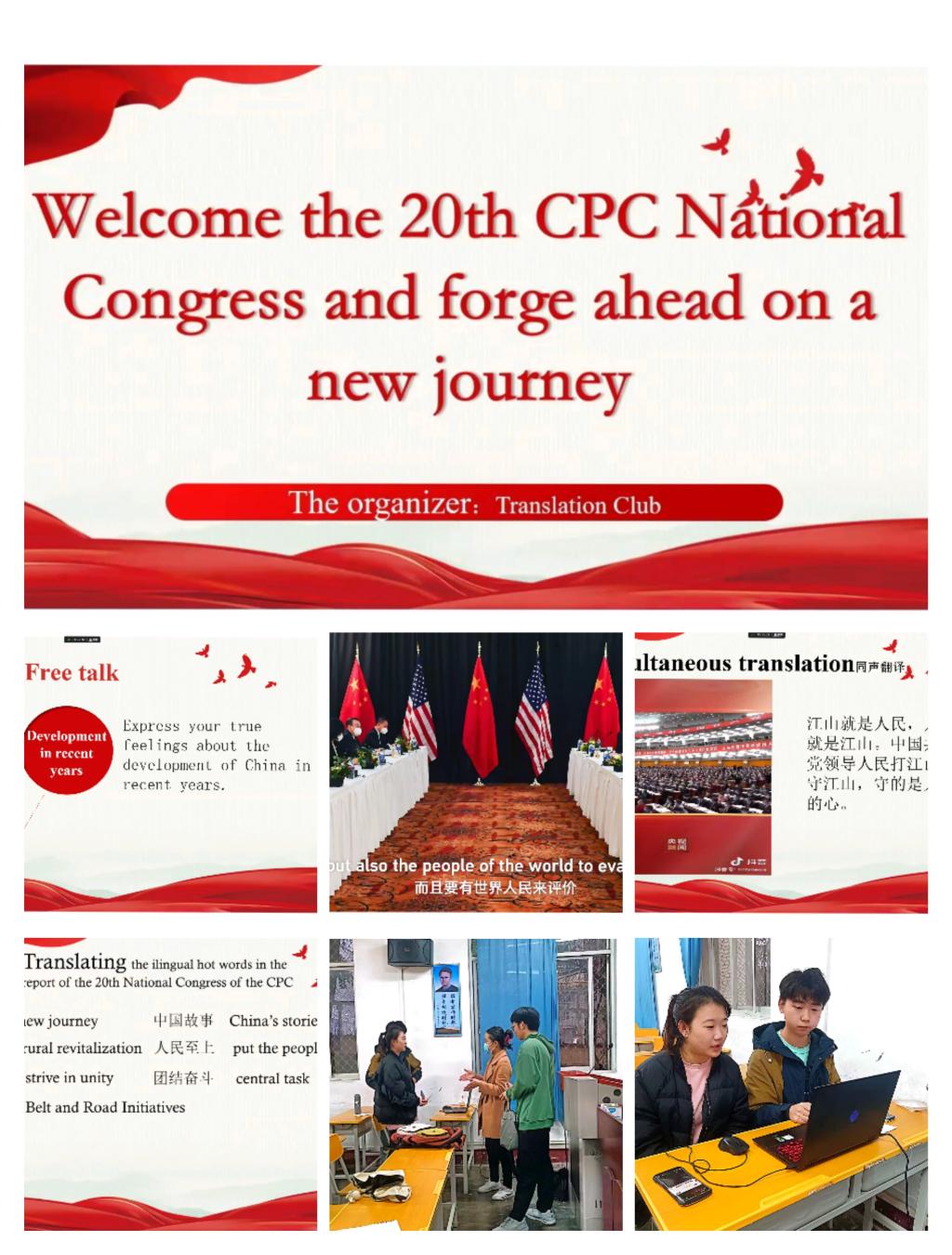 蓝图绘就风正劲,扬帆破浪奋进时,为更好的从专业角度学习、宣传、贯彻党的二十大精神,促进专业融合,彰显新时代学子有理想、敢奋斗的精神风貌,11月23日下午,yL23411永利官网登录翻译社承办了“学习二十大,奋斗新征程”线上英语角活动。