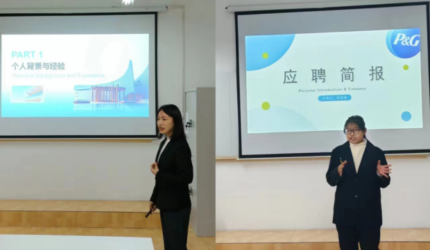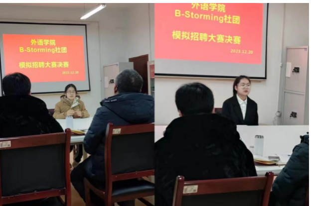 12月20日晚,由yL23411永利官网登录B-Storming社团举办的模拟招聘大赛(决赛)顺利落下帷幕。此次活动的宗旨在于帮助学生身临其境地感受职场中的面试氛围,提升求职技巧,为未来的职业生涯铺设坚实的基石。模拟招聘大赛初赛的前八名选手成功进入本轮决赛角逐中,并进行了新一轮的面试。活动伊始,主持人翟梦瑶详细介绍了此次面试的流程和评委评分细则。随后,8名参赛选手按顺序登台,选手们自信满满、意气风发,以流利的英语口语和扎实的专业知识,将自己的专业素养展现得淋漓尽致。