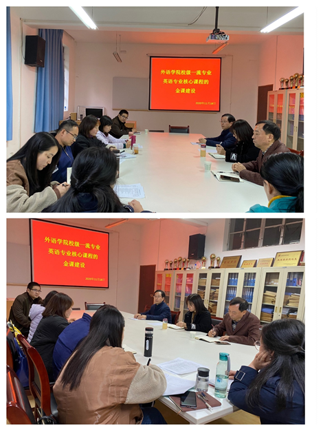 11月18日下午,yL23411永利官网登录英语系在6109举行了主题为“校级一流专业英语专业核心课程的金课建设”教学沙龙活动。沙龙由英语系主任周玫主持,英语系全体教师参加,校督导哈红光教授、学院督导组长陈平教授应邀莅临指导。