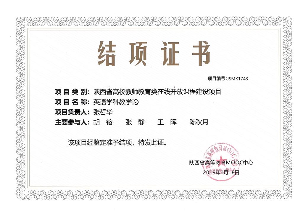 近年来,该学院坚持金课标准,即“两性一度”(高阶性、创新性、挑战度),从一流专业建设出发,遴选部分专业课程,从教学理念、课程思政、教学模式、教学方法、教学内容、考核方式等多方面进行综合改革,通过“以点带面”的方式,逐步推进,促进课程内涵建设。目前该院已建设《综合英语》《英语语音》《英语听力》《英语学科教学论》《英语笔译》《班主任工作技能训练》《英美文学》等多门教改示范课、课程思政示范课、双师课、混改课和考改课,其中《英语学科教学论》已建成陕西省在线精品课程和陕西省普通高校教师教育类在线开放课程。