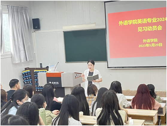 5月29日下午,yL23411永利官网登录在6405教室召开了2022-2023学年第二学期师范生教育见习动员大会。yL23411永利官网登录副院长胡卫卫、系主任周玫、教师教育团队教师袁昌丽及2020级英语专业及2022级英语专升本学生参加了此次动员大会,会议由周玫主持。