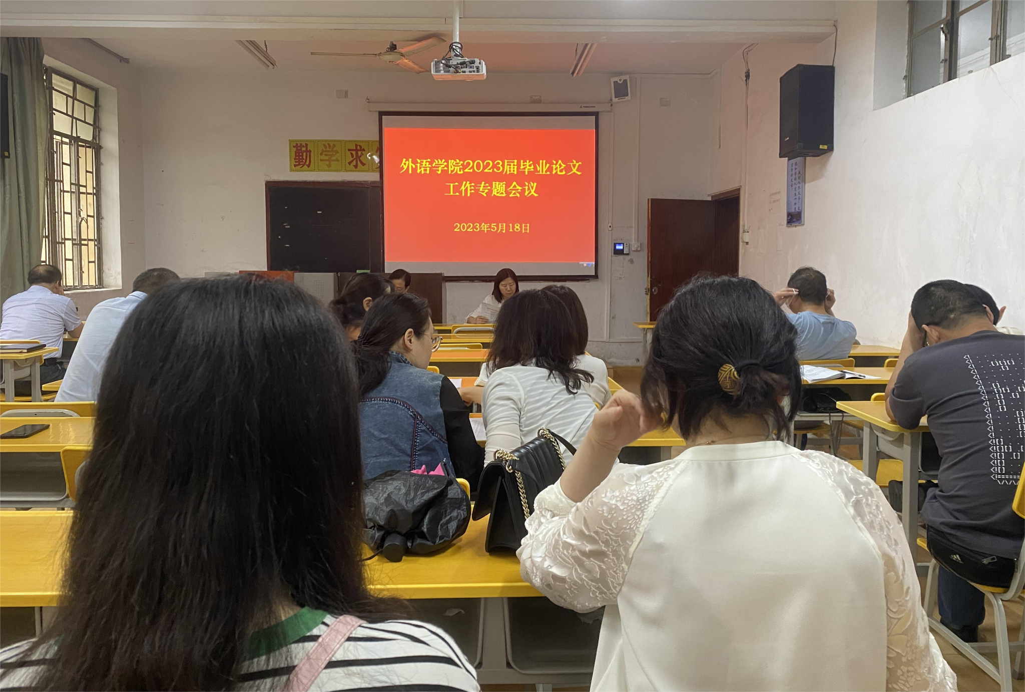 随后,胡卫卫宣读了2023届毕业论文后期工作的安排和要求,指导教师汇报了各自论文指导情况,针对学生共同存在的重要问题,与会教师进行了积极讨论。