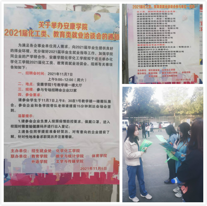 为进一步拓宽就业渠道,增强就业服务保障,由永利官网招就处、化工学院主办,永利官网与教育学院、数统计学院、体育学院、文传学院等共同举办的“yL23411永利官网登录2021届化工类、教育类就业洽谈会”于11月7日在江南校区篮球场举办,参与专场招聘会企业22家。永利官网党总支书记肖红香,副院长(主持工作)张哲华,副院长胡卫卫、刘子富,学工办副主任梁博文,辅导员李梦以及毕业班学生参会。