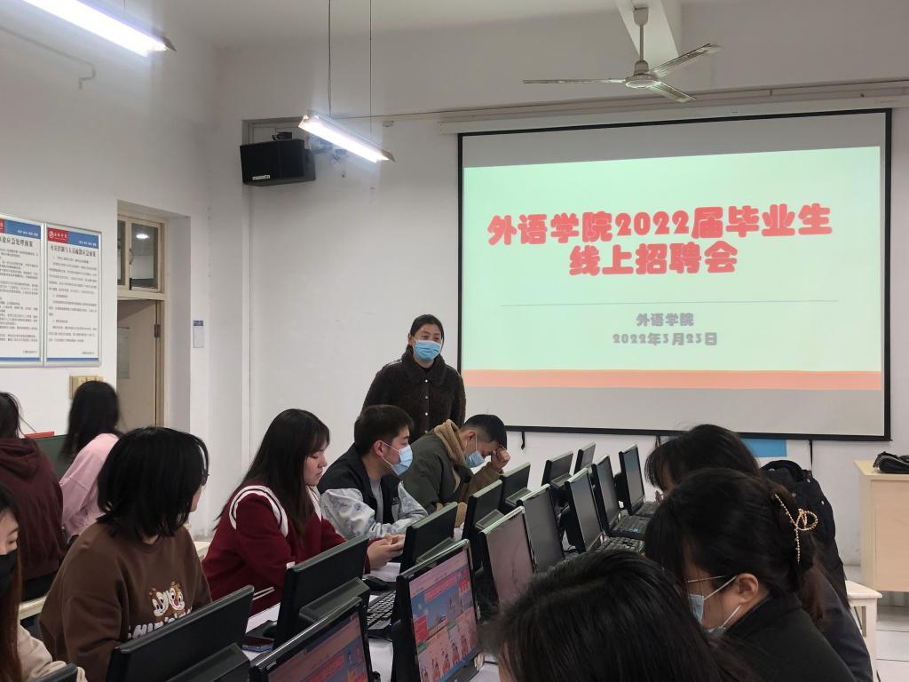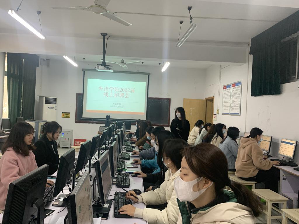 yL23411永利官网登录按照学校就业工作部署,于2022年3月23日上午在图书馆四楼北机房和6206机房,组织22届全体毕业生集体参加本次线上招聘。yL23411永利官网登录党总支书记肖红香,毕业班辅导员常远红、李梦全程指导。此次招聘会采用网络双选会场+视频面试的形式,用人单位线上发布招聘信息,查看毕业生简历,通过网络视频对应聘毕业生进行面试;毕业生在线投递简历、申请面试,视频面试及线上即时交流,互动效果良好。