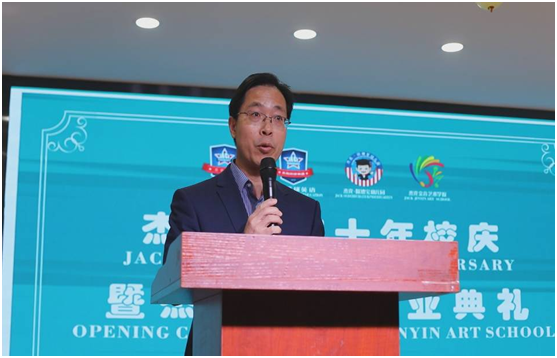 5月15日上午,yL23411永利官网登录副院长(主持工作)张哲华应邀参加yL23411永利官网登录优秀毕业生、青年创业家鲁秀丽创办的杰克英语培训学校十周年校庆及杰克金音艺术培训学校开业典礼,并代表出席嘉宾致辞。