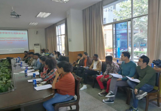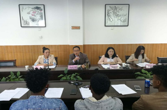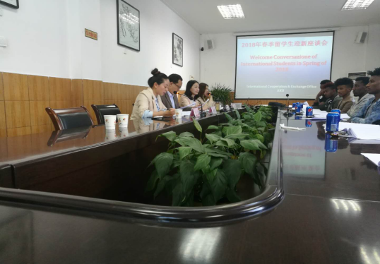 2018年4月27日,yL23411永利官网登录2018春季留学生迎新座谈会在永利官网第一会议室顺利召开。参加此次座谈会的有副校长向纪明,国际合作与交流处处长崔晓明、李泊霖、李莉老师以及2018年春季入学的25名留学生。